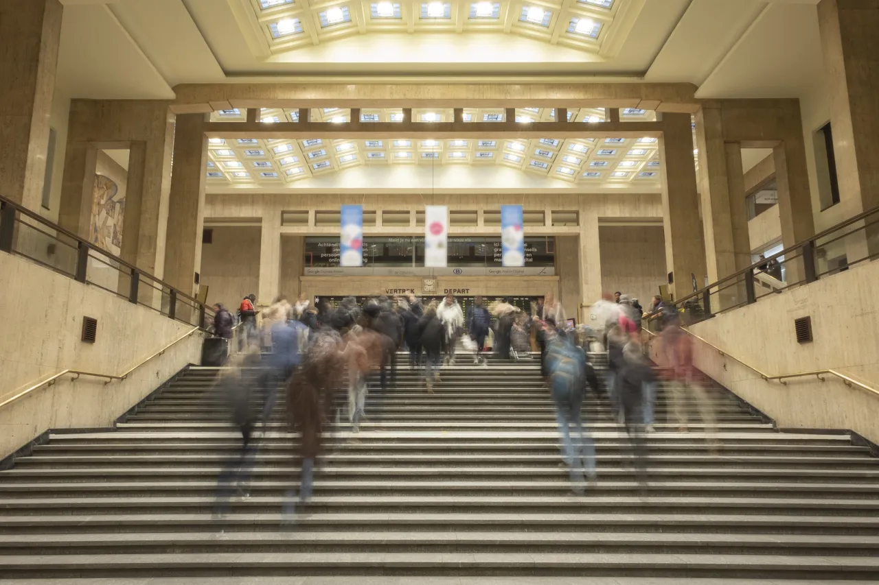 Brussels Congress opened in 1952, as part of the subterranean North-South connection. The station building designed by modernist architect Maxime Brunfaut, has hosted its fair share of exhibitions and raves in the early 2000’s next to its function as a train station.